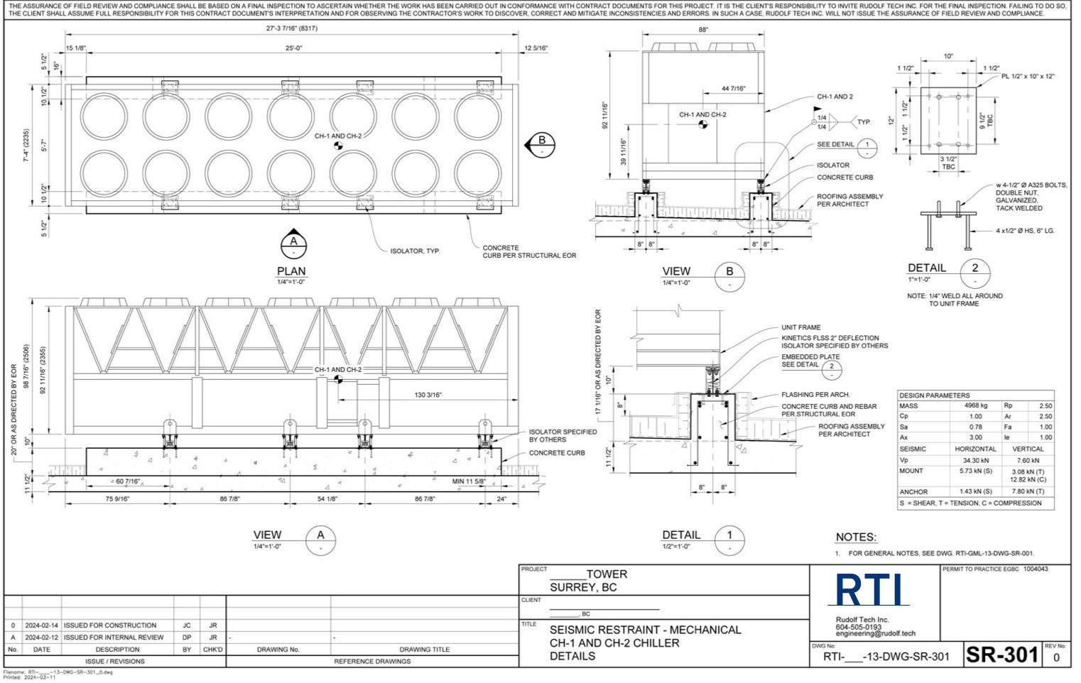 Standard details - issued for each project without significant modification. This includes braces, anchorage, fasteners, housekeeping pads, etc.