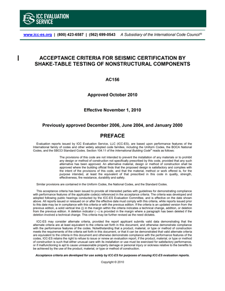 For high-criticality and post-disaster projects, such as schools, hospitals, firehalls, and emergency response centers, the performance criteria for equipment include continued functionality after the earthquake. This criterion can be met only through testing to AC156.