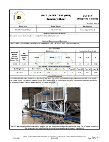The seismic engineer’s responsibility is limited to the performance of the restraint. The equipment manufacturer remains responsible for the performance of the unit itself to ensure that it can withstand the specified seismic shaking without falling apart, and in some cases, without losing functionality.