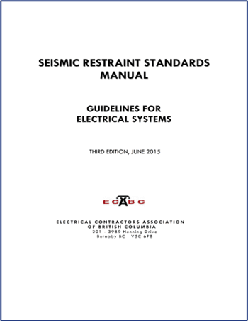 The manual provides guidelines for the restraint of electrical equipment, conduits, and cable trays. It provides design details and is generally accepted for practice in British Columbia.